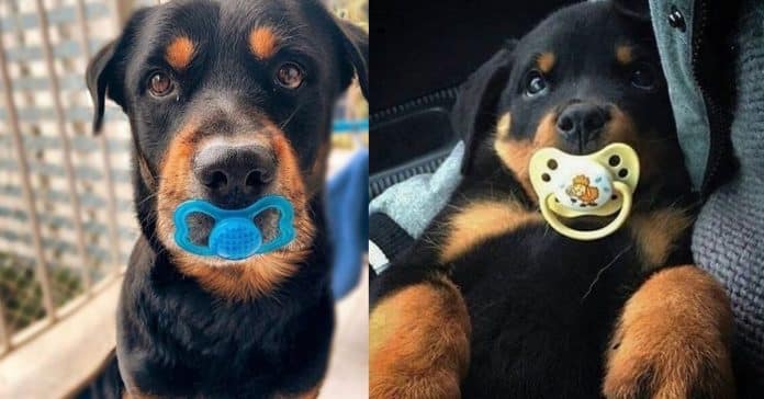 Rottweiler Eileen has been sucking her mommy’s thumb since she was only a few weeks old, but her habit has not changed yet. She is 7 months now and still needs to thumb-suck before falling asleep.